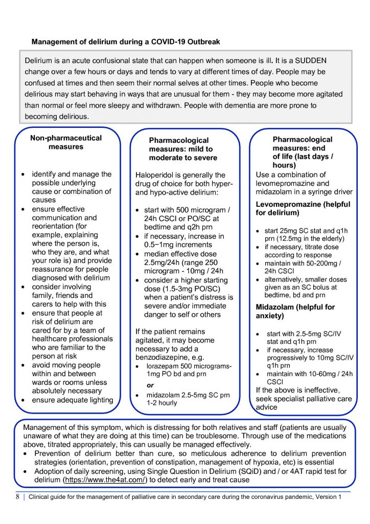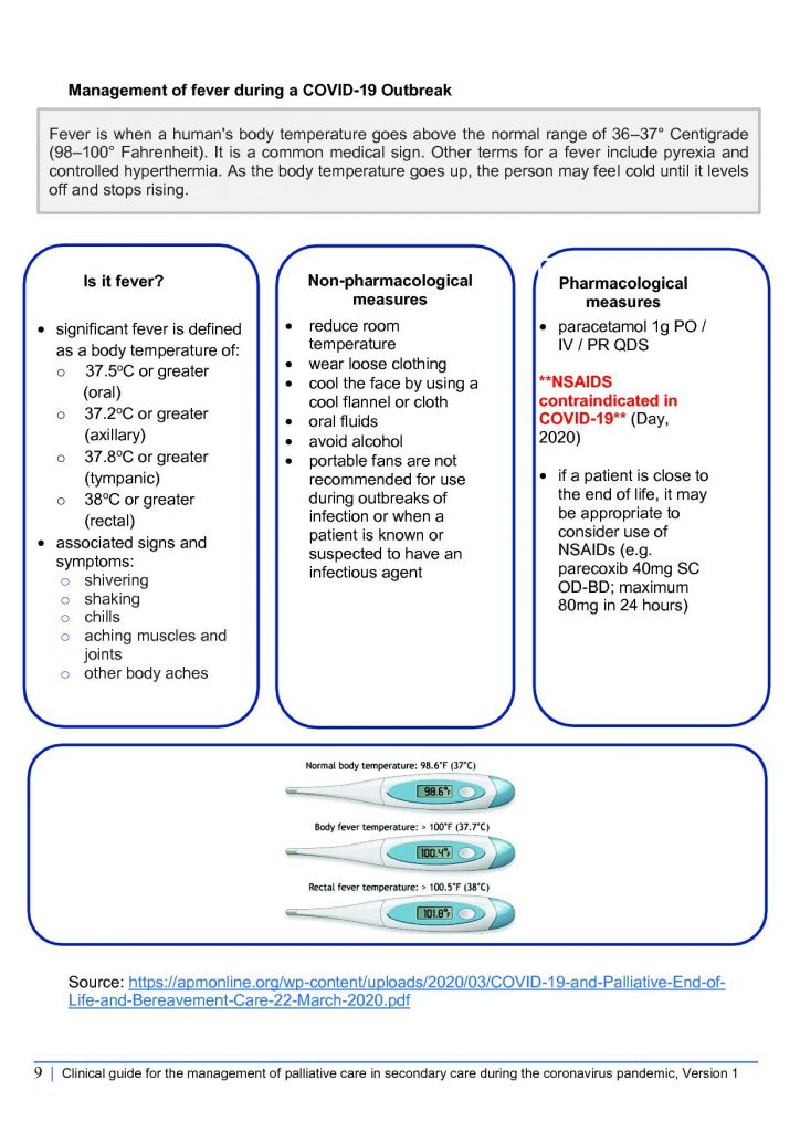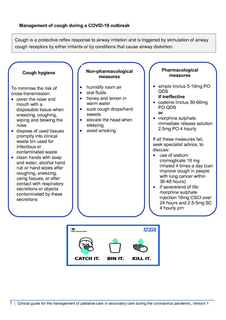 This guidance is for secondary care, however given large numbers of patients involved some of the patients may end up being palliated at home. The following few pages from this guidance are useful. The full document can be downloaded below:
